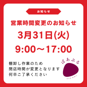 12月18日(木)からソフトクリーム販売所の窓口が店内に変更となります。また販売所変更作業のため、12月17日(水)のソフト販売所を終日休業とさせていだだきます。 寒い冬でも暖かい店内で美味しいのだ塩ソフトを是非お召し上 […]